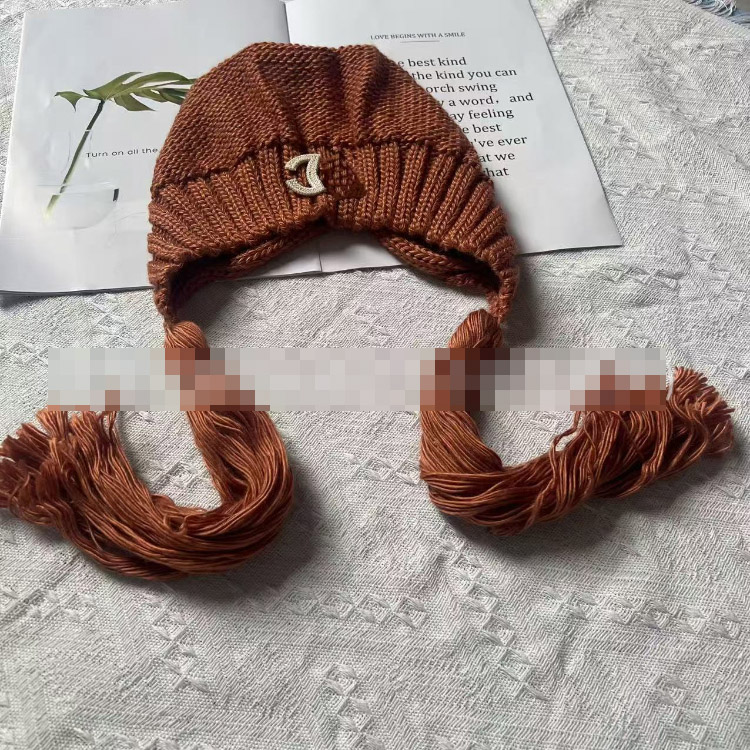 Chanel solid color vintage knitted hat with tassels-5856