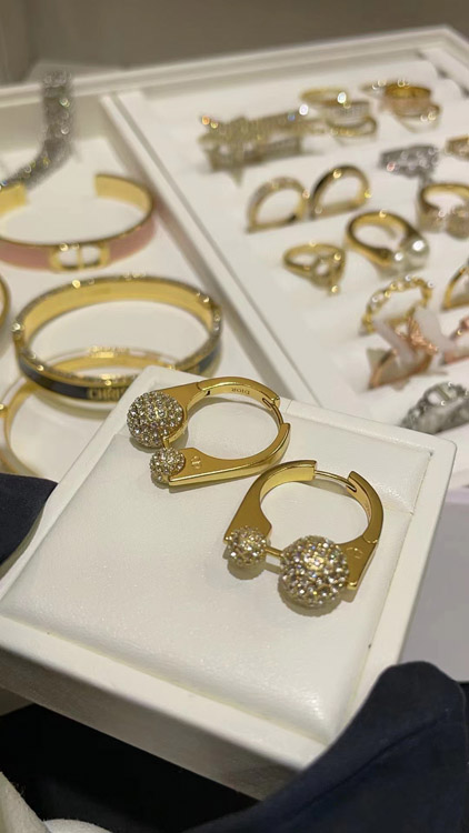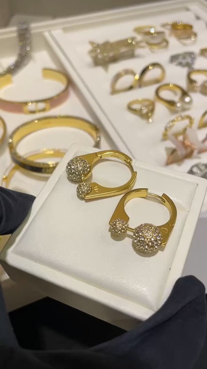 Home > Dior French full diamond small golden ball gold earrings-3711