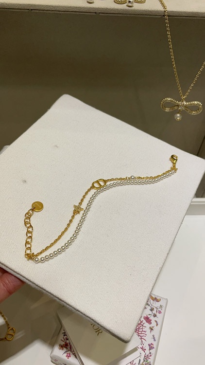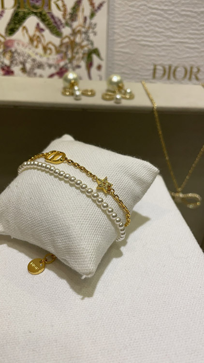 Dior gold diamond star pearl chain double bracelet-3704