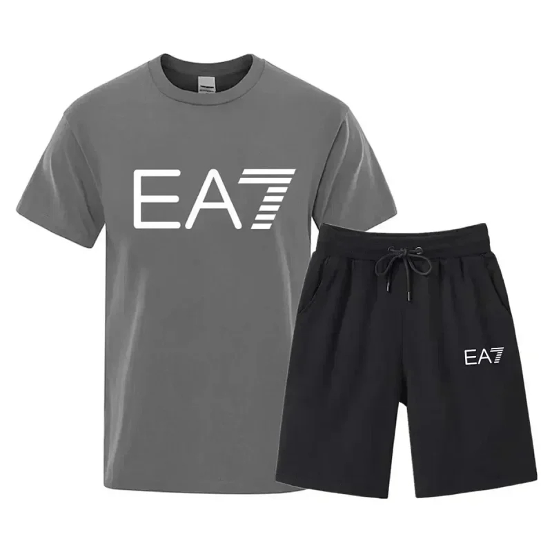 EMPORIO ARMANI EA7 Lettering Logo Round Neck Short Sleeve T-Shirt Shorts Set-2751