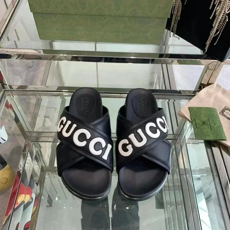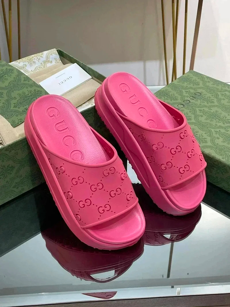 GUCCI one-word new slippers embroidered thick-soled height-enhancing platform cake couples(37 styles)-2331
