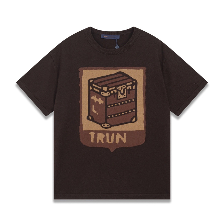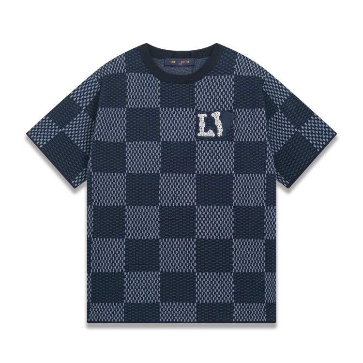 Louis Vuitton LV knitted checkerboard pattern letter jacquard casual loose short-sleeved T-shirt-5308