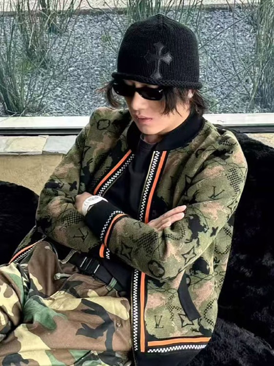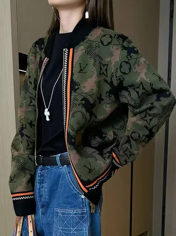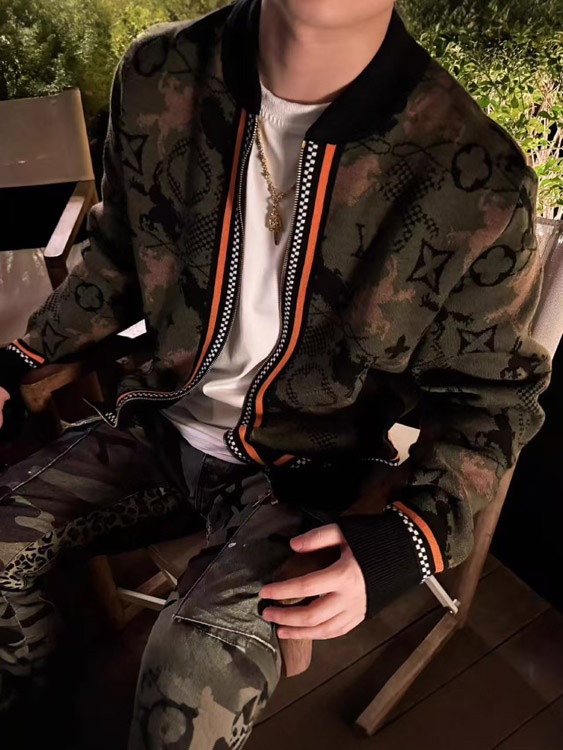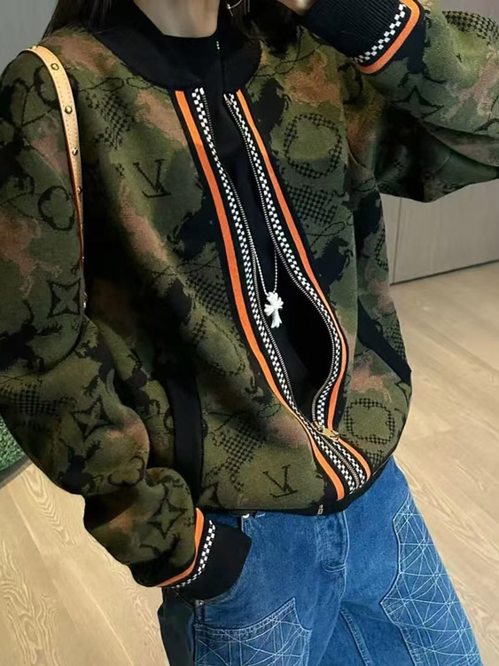 Home > Louis Vuitton LV new jacquard wool bomber knit sweater camouflage jacket-5218