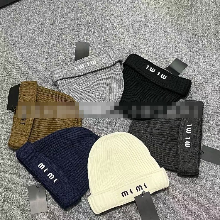 Miu Miu letter-embroidered ear-warming knitted hat-5845