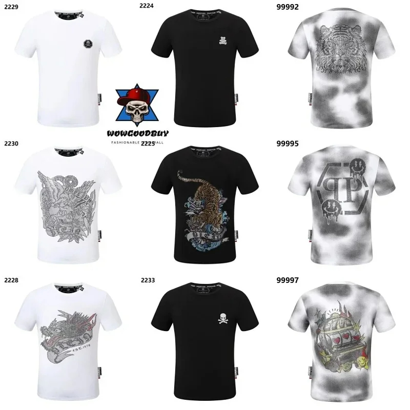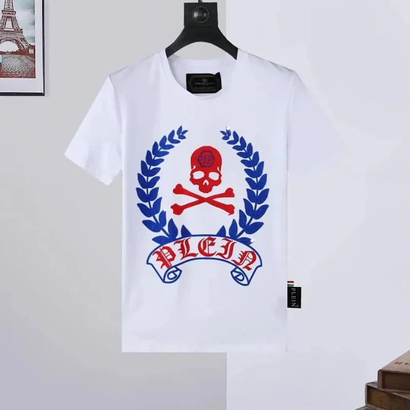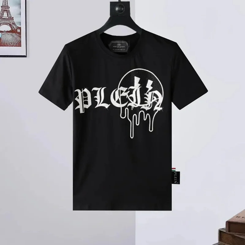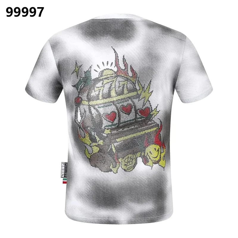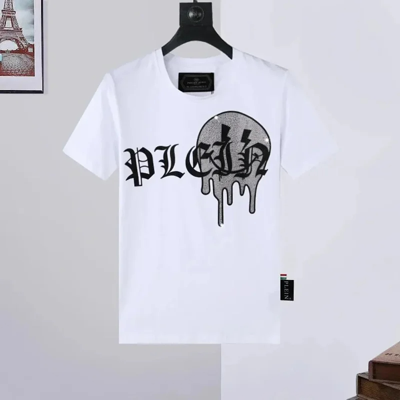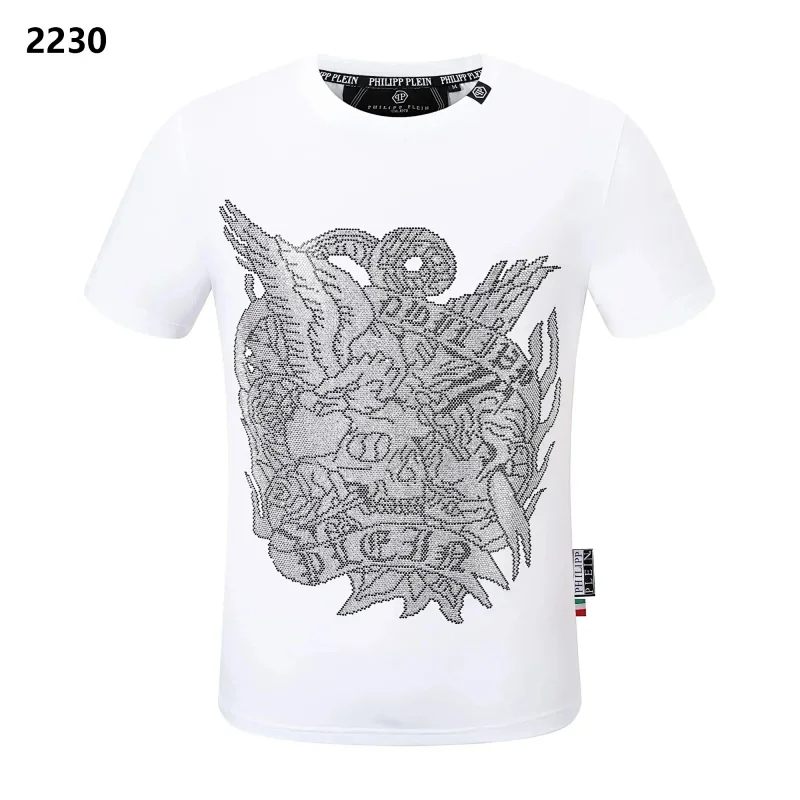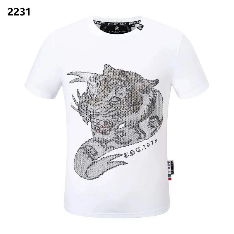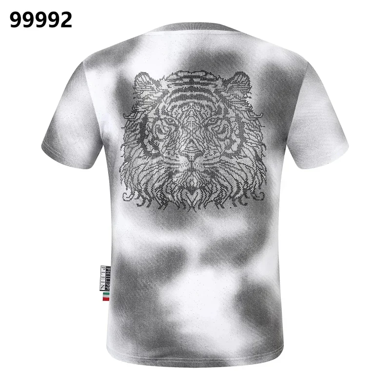 PLEIN Medusa Tiger Head Printed Diamond Short Sleeve T-Shirt-1982