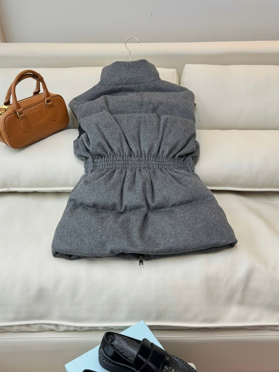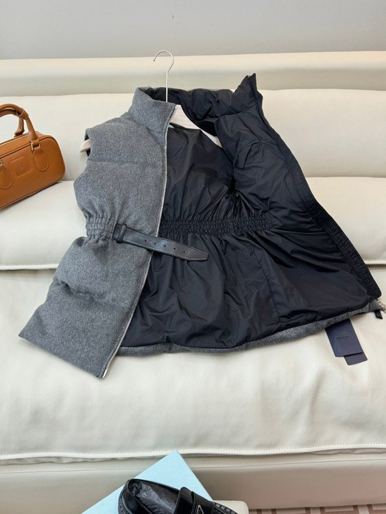 Prada new stand-collar down vest with logo and adjustable waist-5354
