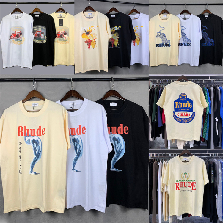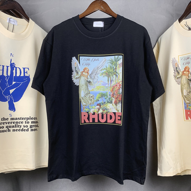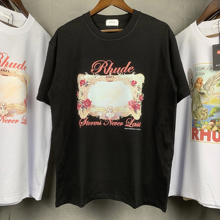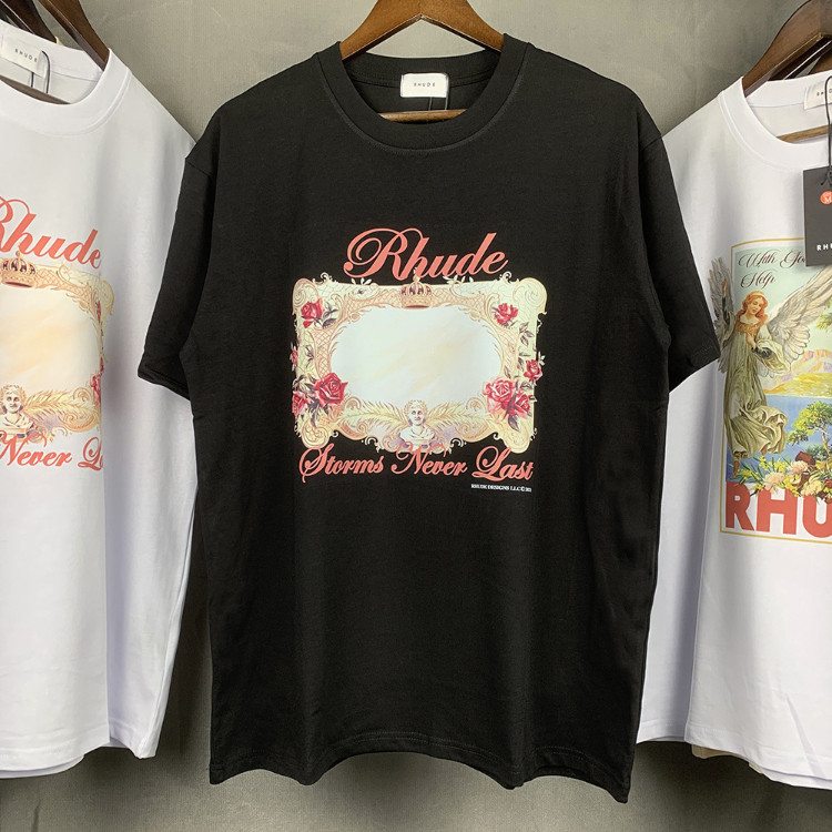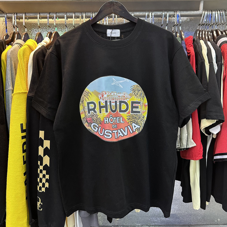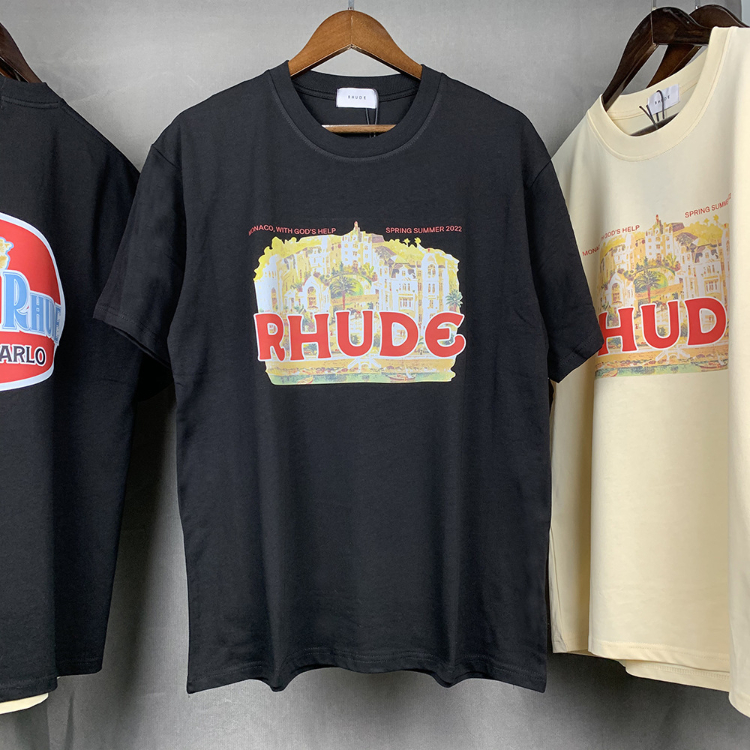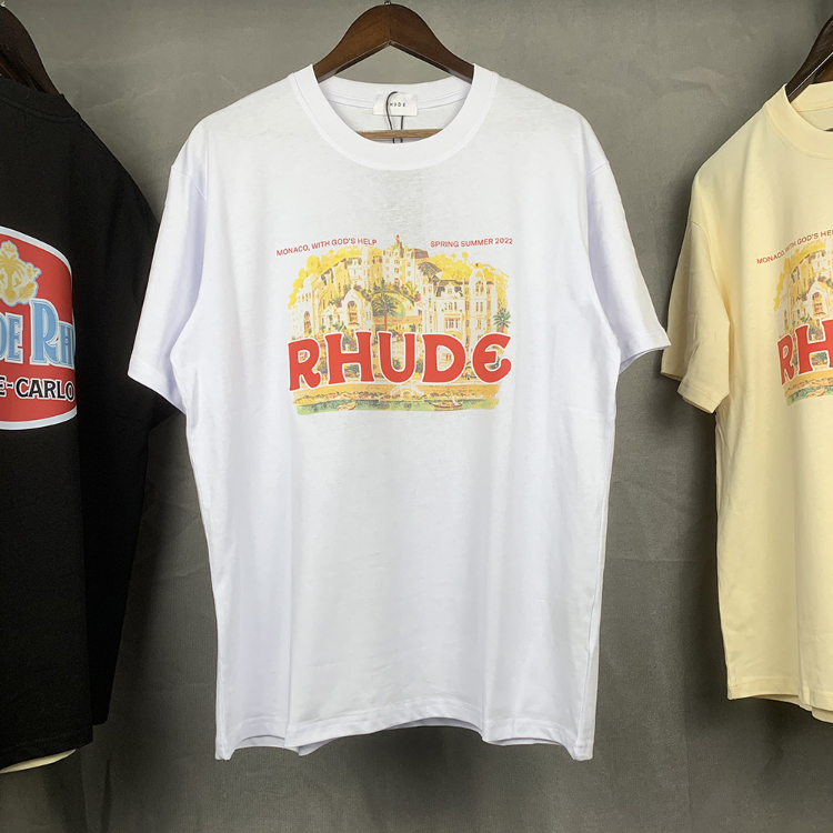 Rhude loose-fitting printed crew neck short-sleeved cotton T-shirt-5222