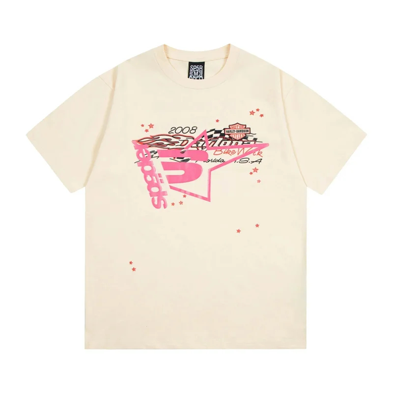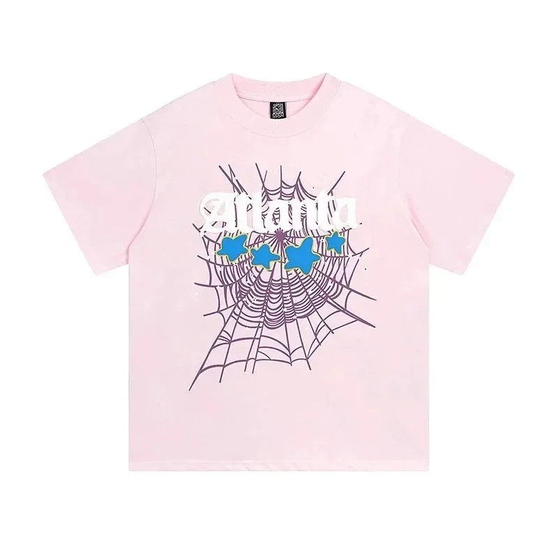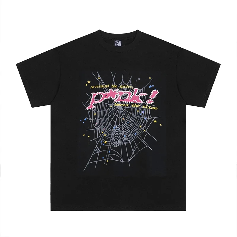 SP5DER Spider Web Foam Print Loose Casual Top T-Shirt-1861