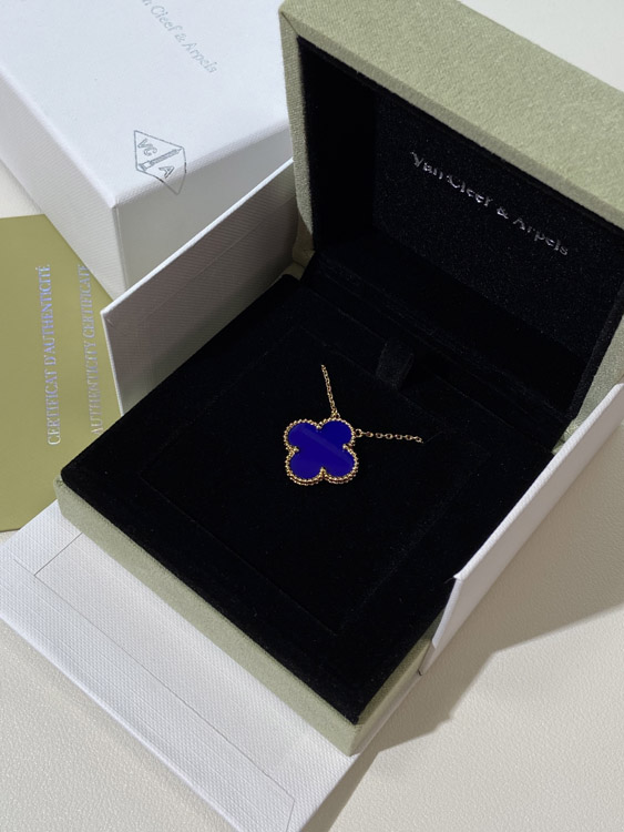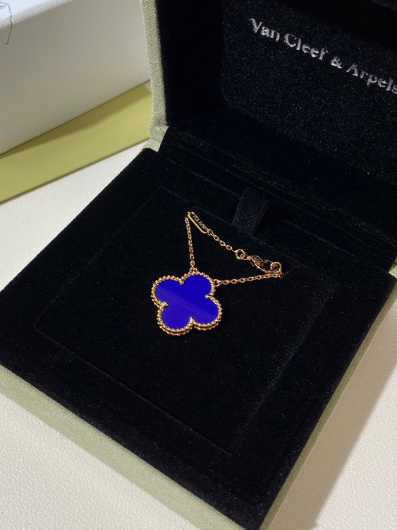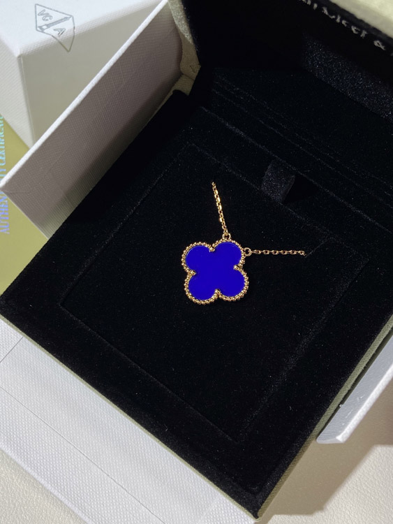 Home > Van Cleef & Arpels four-leaf clover gold blue obsidian wide necklace-3791