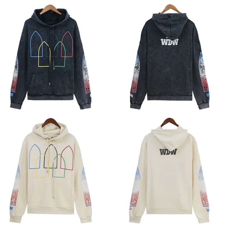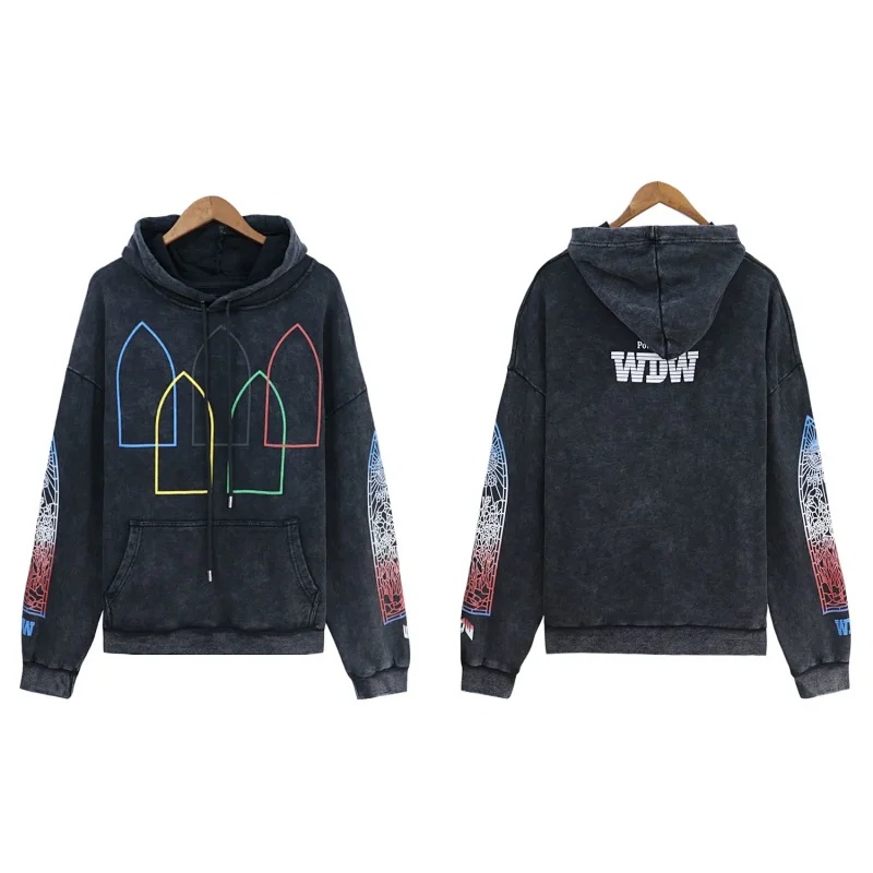 WHO DECIDES WAR Washed and distressed retro printed casual hooded sweatshirt-1619