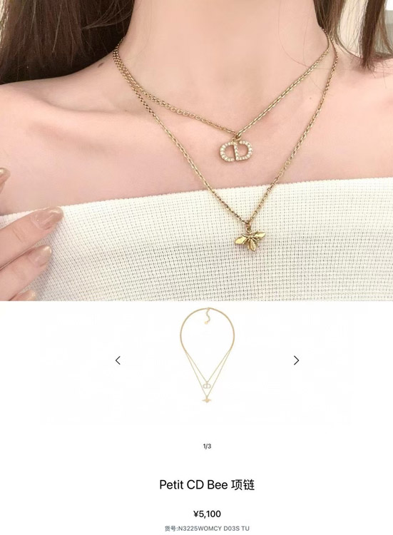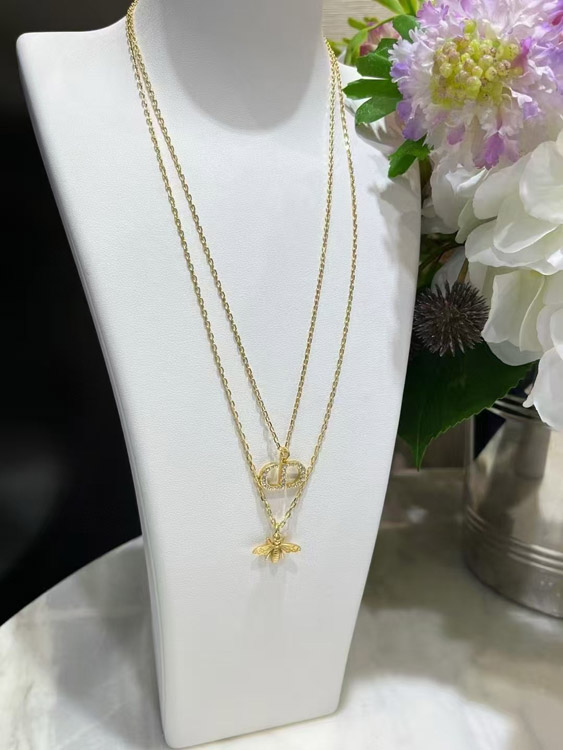 Dior gold diamond bee pendant double necklace-3706