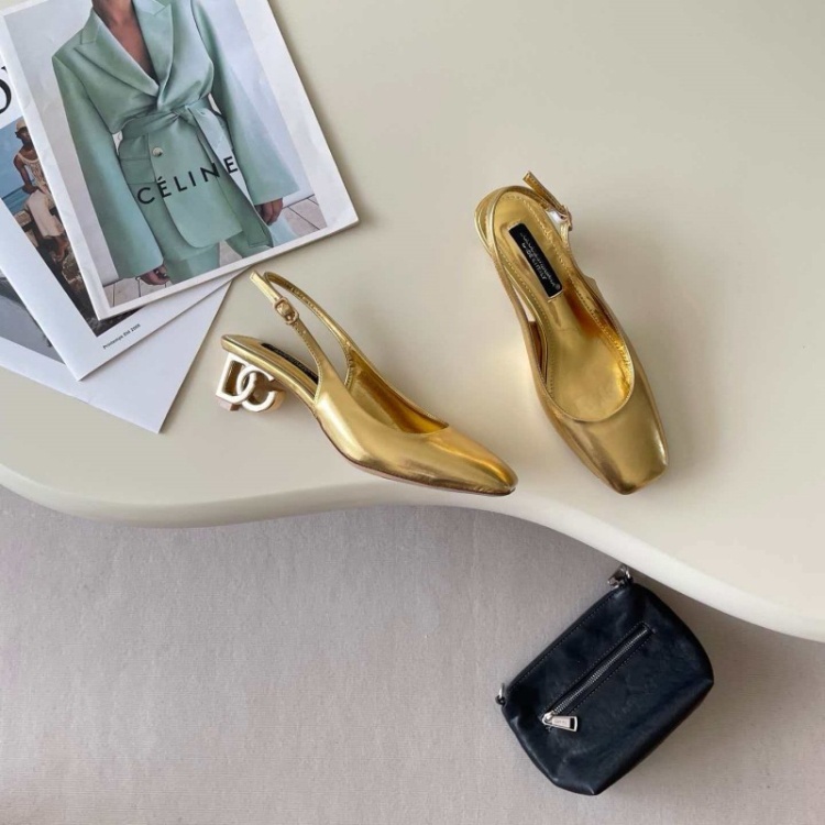 Dolce & Gabbana DG new square-toe open-back metallic high heels-5721