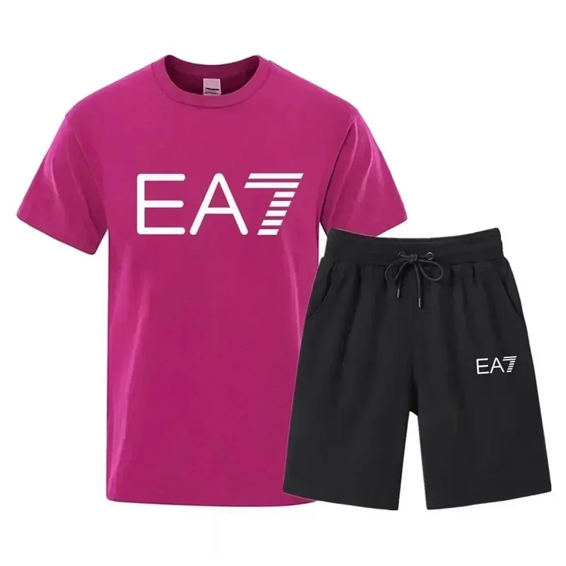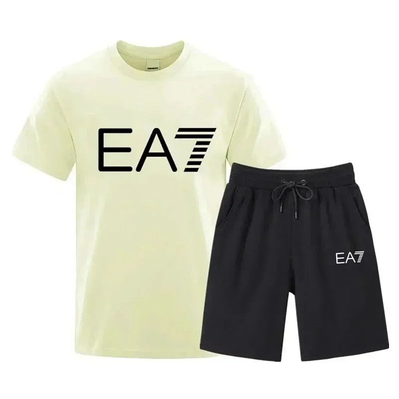 EMPORIO ARMANI EA7 Lettering Logo Round Neck Short Sleeve T-Shirt Shorts Set-2751