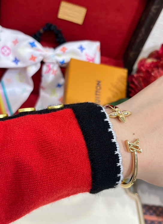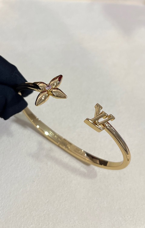 Louis Vuitton LV Rose Quartz Floral Letter Gold Open Bracelet-3720