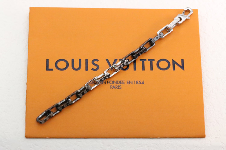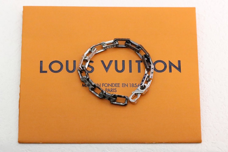 Louis Vuitton LV striped silver and black stitching tempered bamboo bracelet-3627