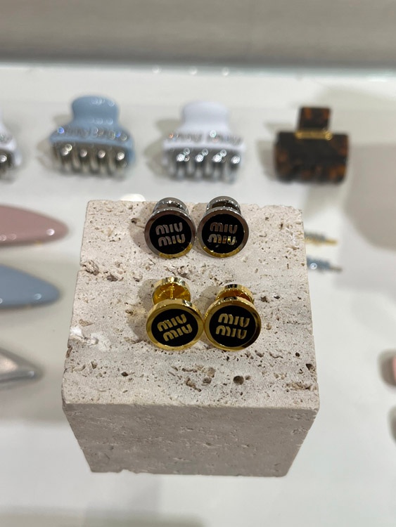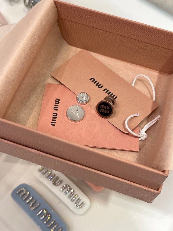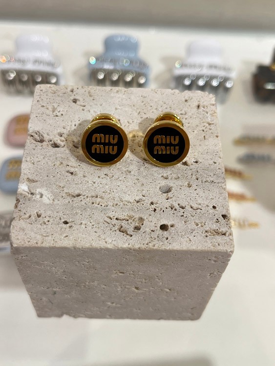 MIUMIU black enamel letter metal round button earrings-3893