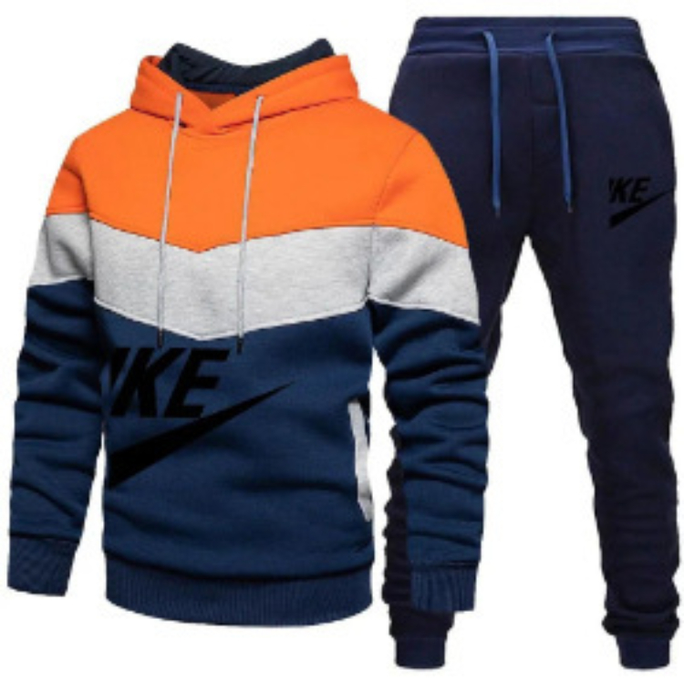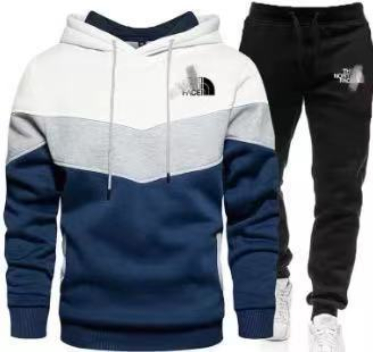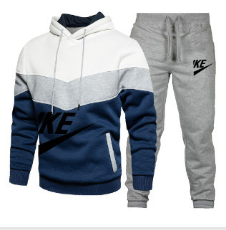 Home > New multi-colored patchwork hooded sweatshirt set-5221