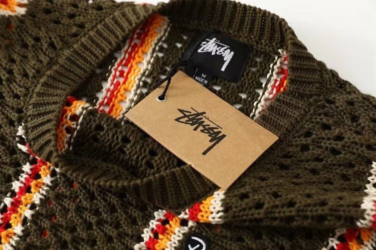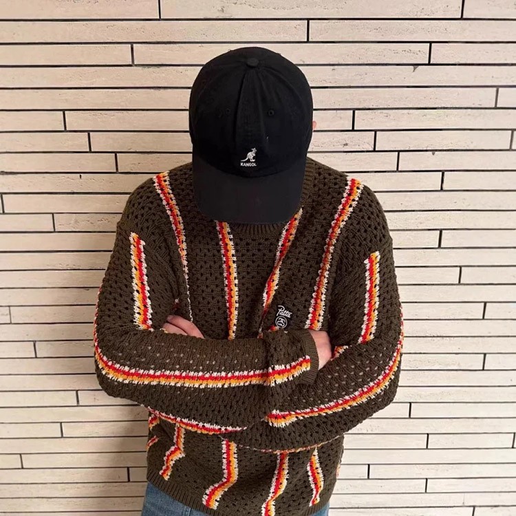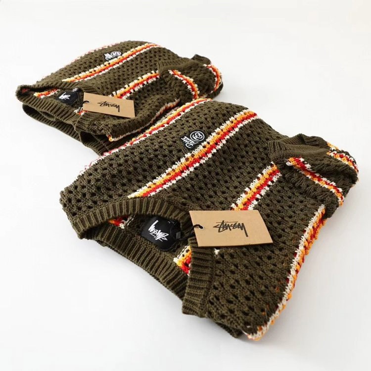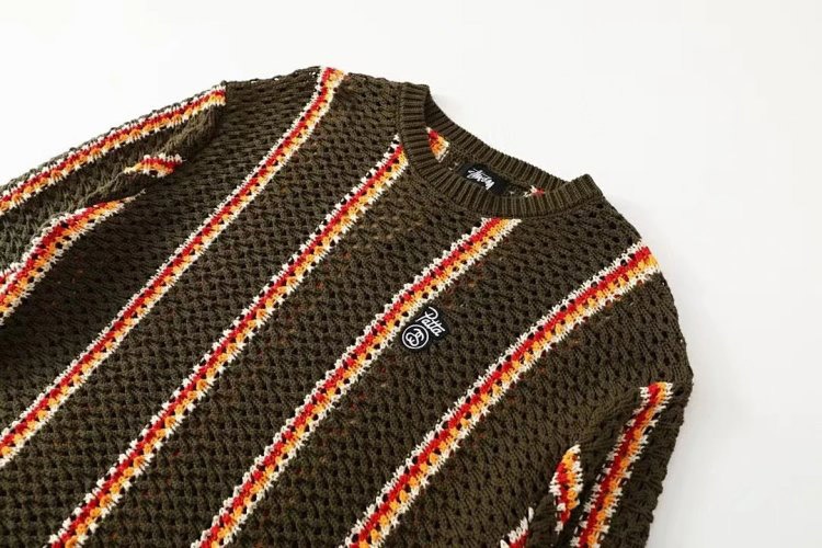 Home > Stussy striped openwork knit crew neck sweater-5510