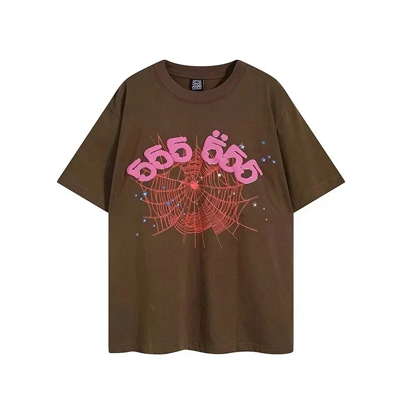 SP5DER Spider Web Foam Print Loose Casual Top T-Shirt-1861