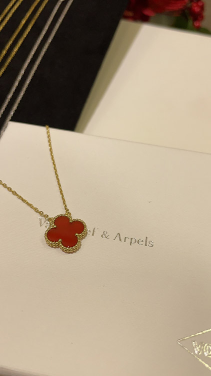 Van Cleef & Arpels Carnelian Four-Leaf Clover Gold Necklace-3888
